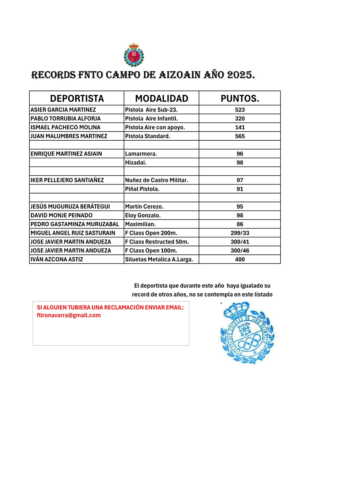LISTADO DE REORDS DEL CAMPO DE TIRO EN 2025.